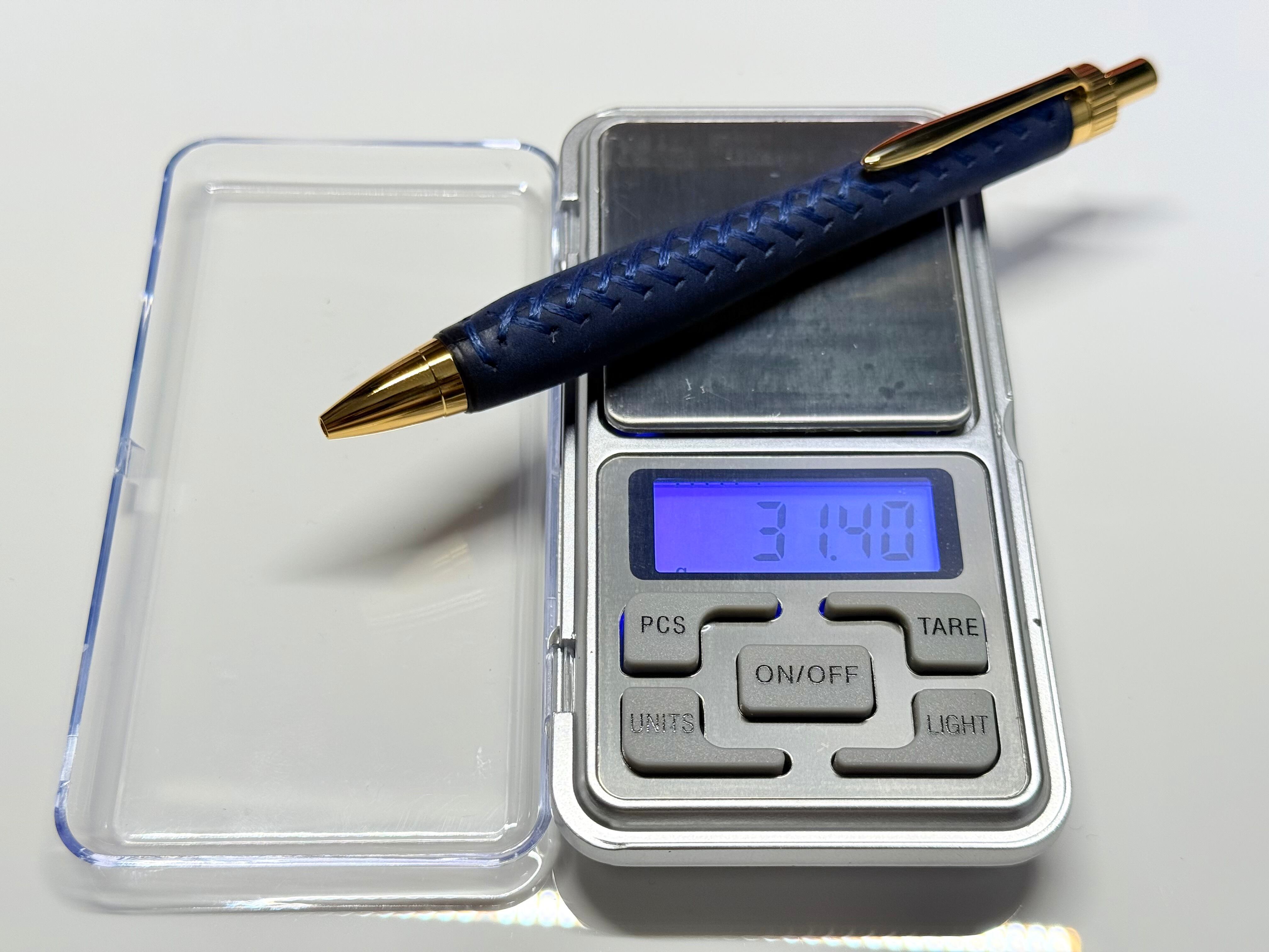 糸は耐久性の高いポリエステルの編織平糸を使用し、ペンに指が触れる方向を考慮しているため指に糸が触れたときの違和感を極力感じにくくしたオリジナルのステッチを施しています。