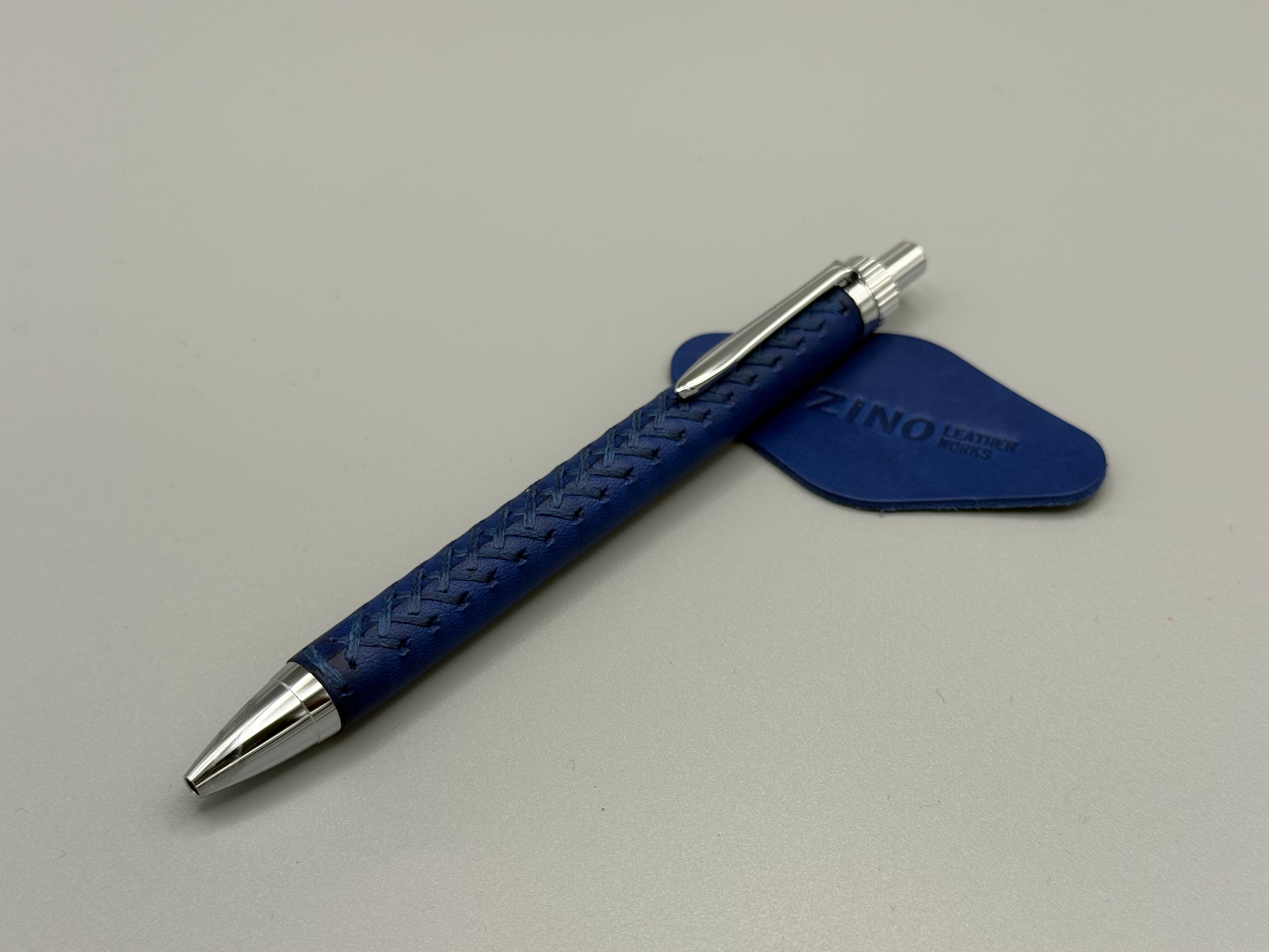 糸は耐久性の高いポリエステルの編織平糸を使用し、ペンに指が触れる方向を考慮しているため指に糸が触れたときの違和感を極力感じにくくしたオリジナルのステッチを施しています。