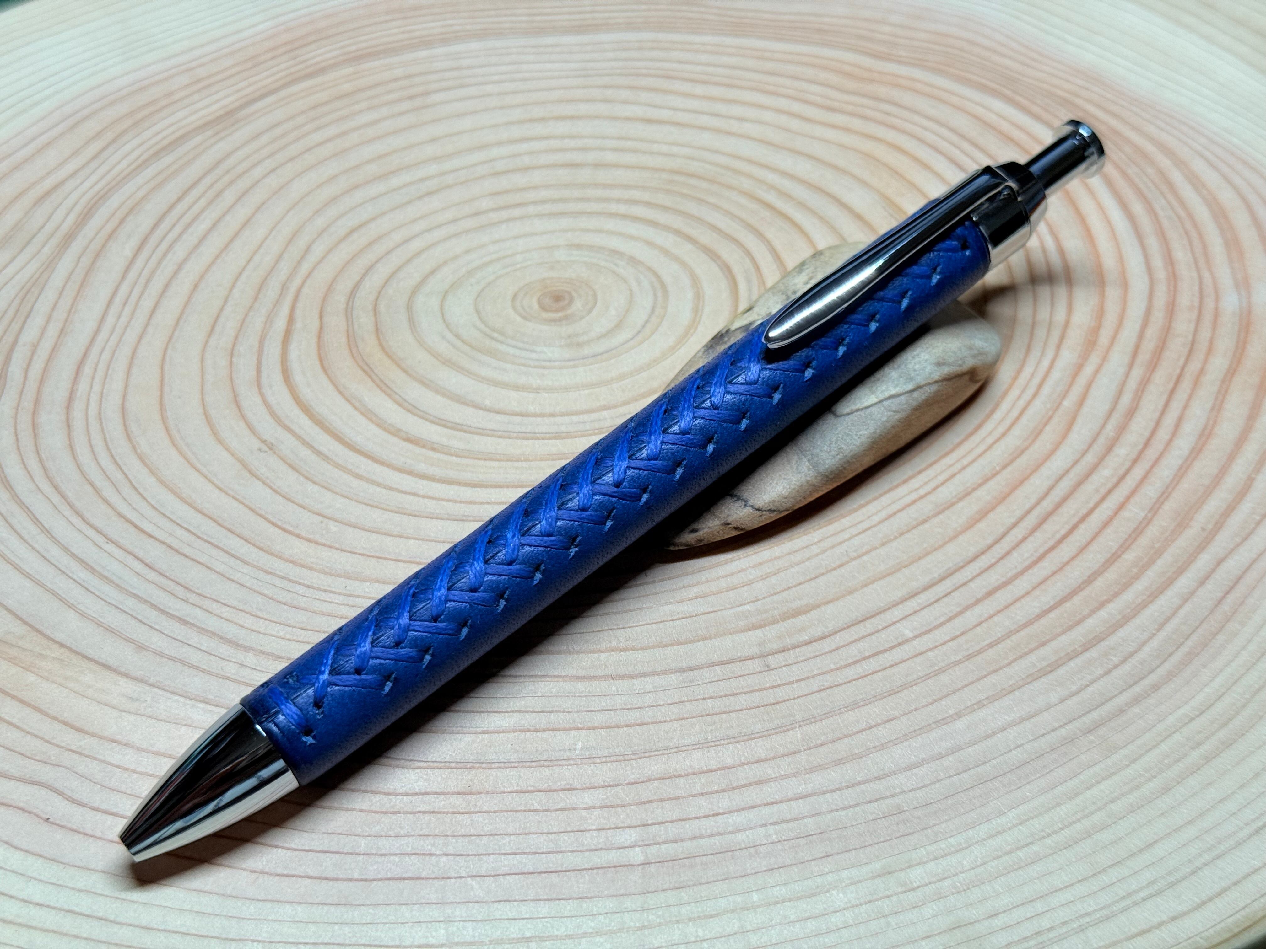 糸は耐久性の高いポリエステルの編織平糸を使用し、ペンに指が触れる方向を考慮しているため指に糸が触れたときの違和感を極力感じにくくしたオリジナルのステッチを施しています。