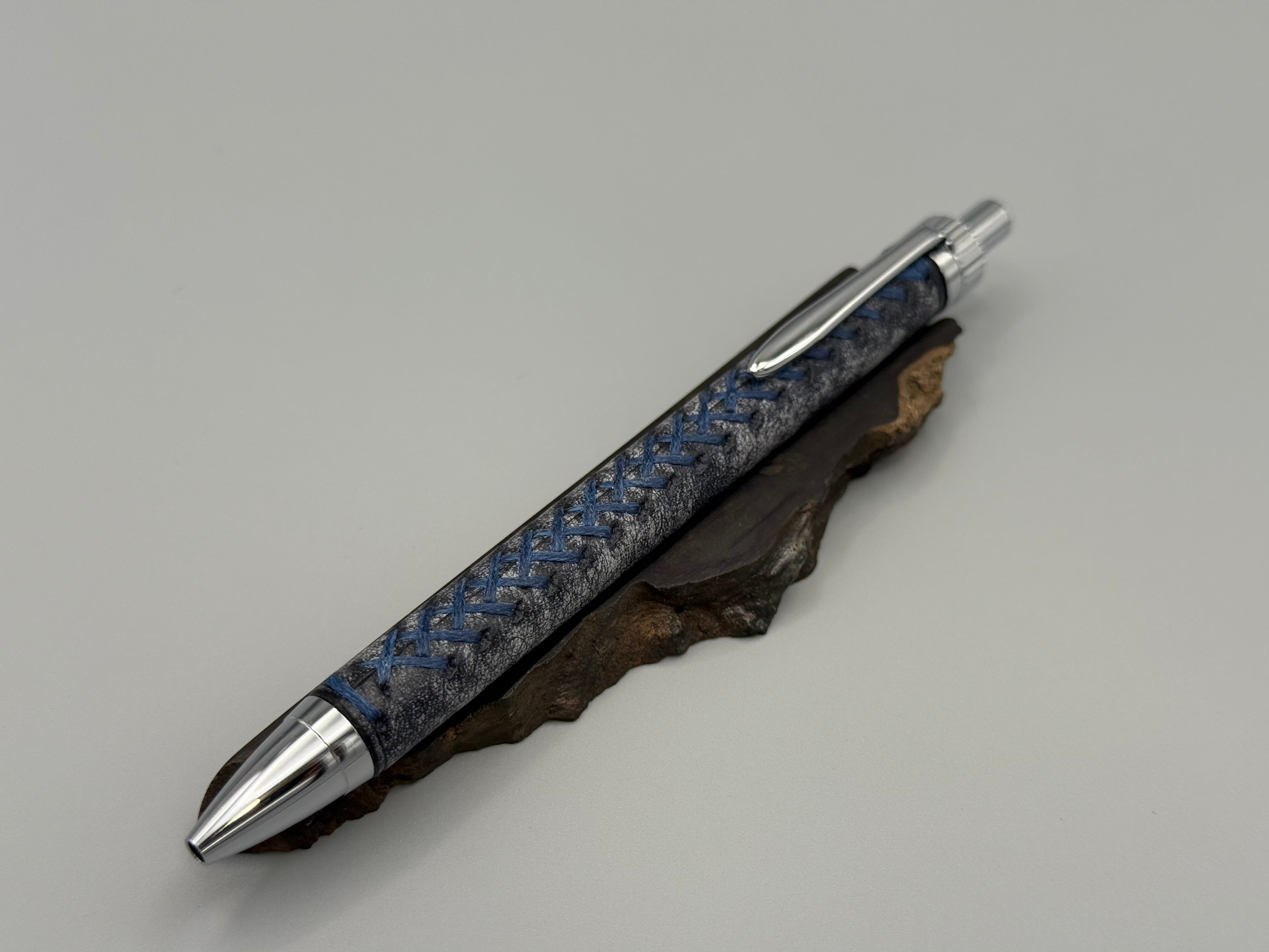 糸は耐久性の高いポリエステルの編織平糸を使用し、ペンに指が触れる方向を考慮しているため指に糸が触れたときの違和感を極力感じにくくしたオリジナルのステッチを施しています。