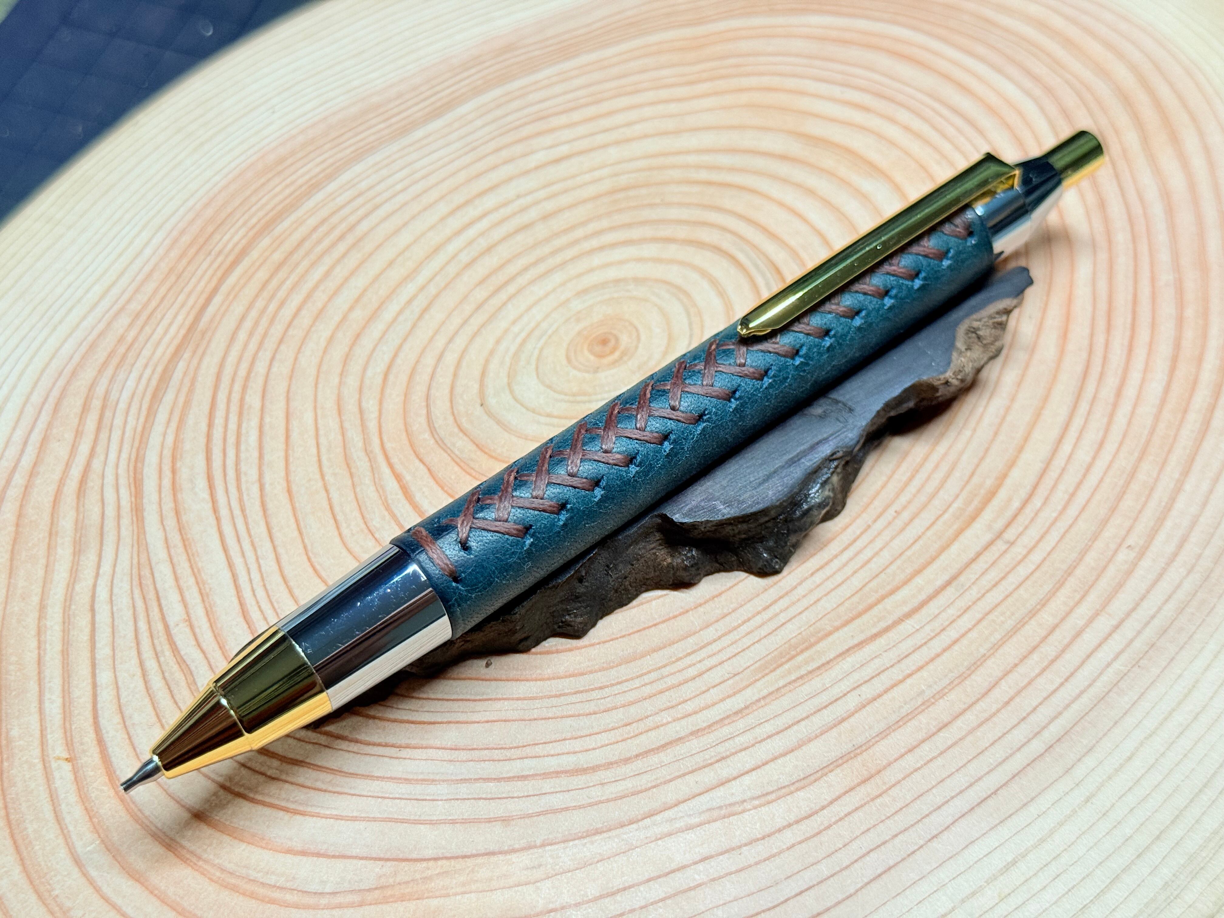 zawasouさんのシャーペン金具に当工房で革を巻かせていただいた1本になります。