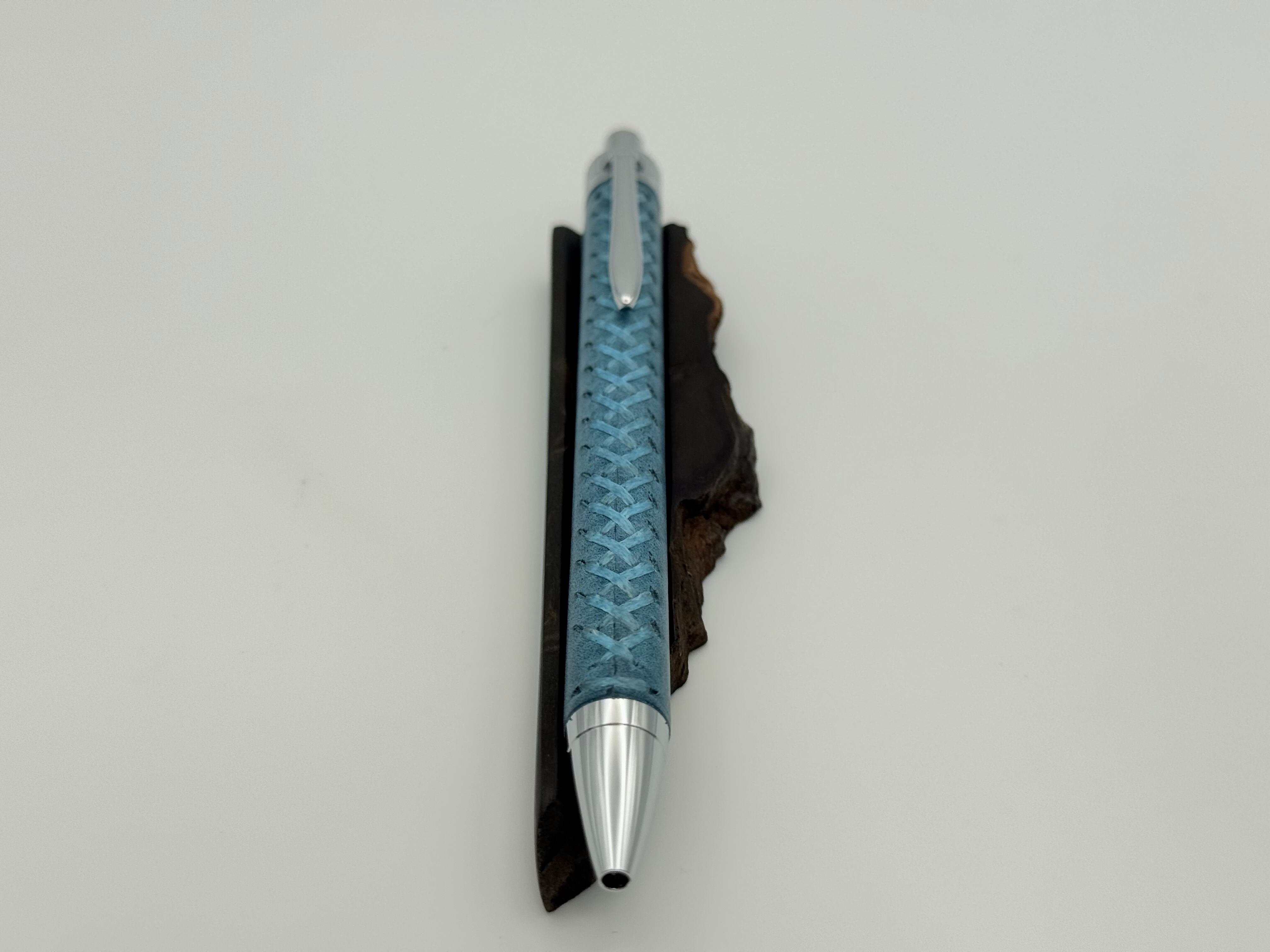 糸は耐久性の高いポリエステルの編織平糸を使用し、ペンに指が触れる方向を考慮しているため指に糸が触れたときの違和感を極力感じにくくしたオリジナルのステッチを施しています。
