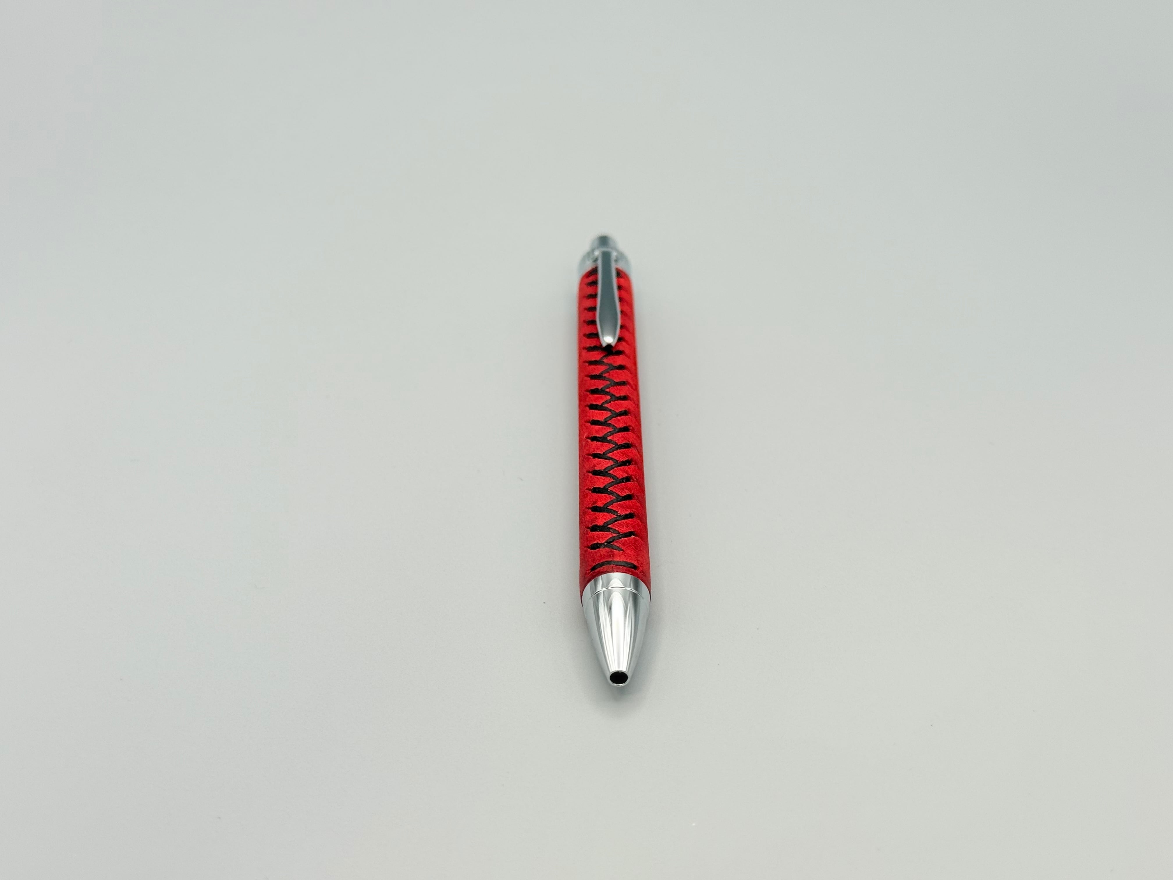 オリジナルステッチであるシフトクロスステッチを改良し、糸が交差することなく縫い上げているため、糸の凹凸をさらに減らした新作ステッチ『スタッガードステッチ』。糸は耐久性の高いポリエステルの編織平糸を使用し、ペンに指が触れる方向を考慮しているため指に糸が触れたときの違和感を極力感じにくくしたオリジナルのステッチを施しています。