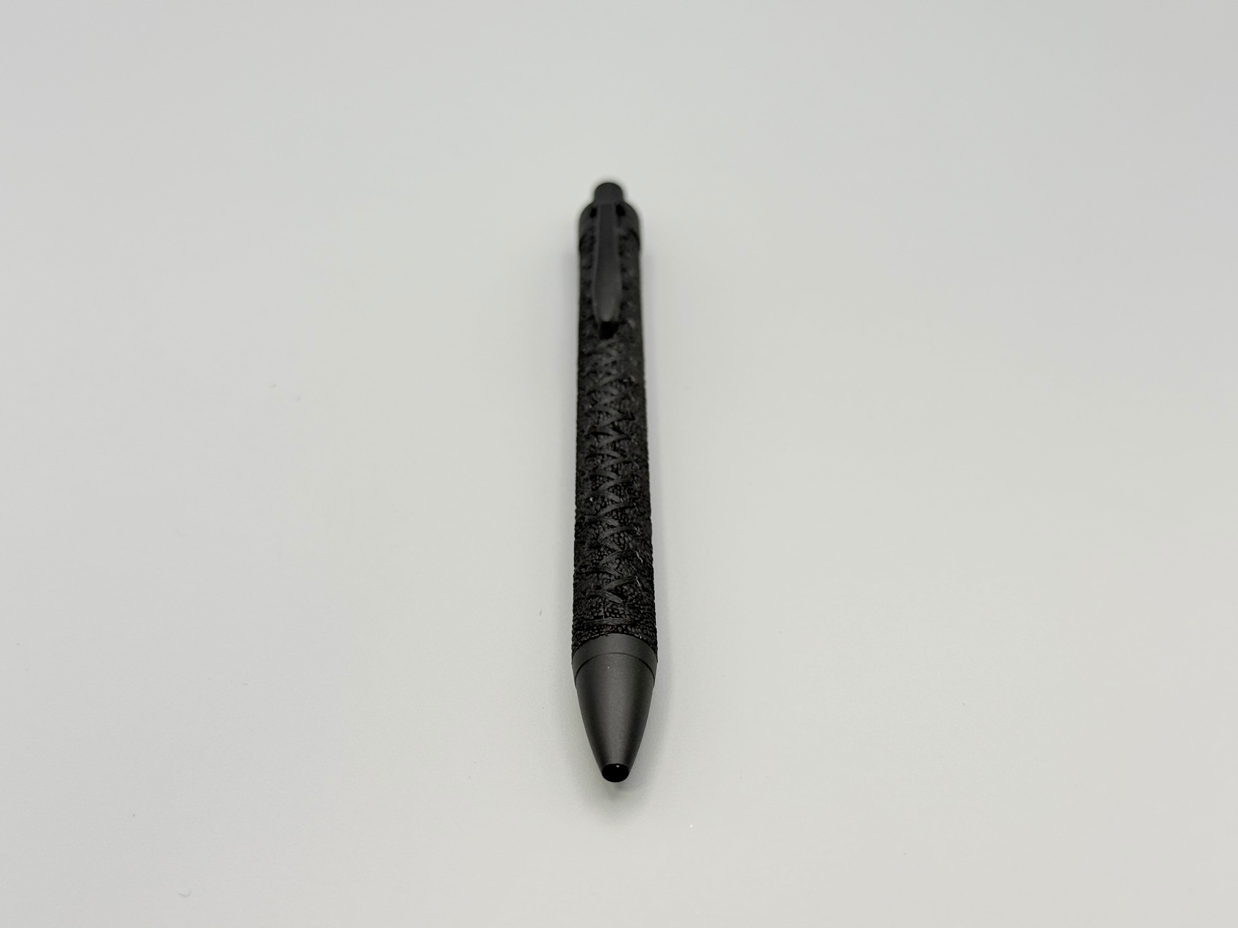 オリジナルステッチであるシフトクロスステッチを改良し、糸が交差することなく縫い上げているため、糸の凹凸をさらに減らした新作ステッチ『スタッガードステッチ』。糸は耐久性の高いポリエステルの編織平糸を使用し、ペンに指が触れる方向を考慮しているため指に糸が触れたときの違和感を極力感じにくくしたオリジナルのステッチを施しています。