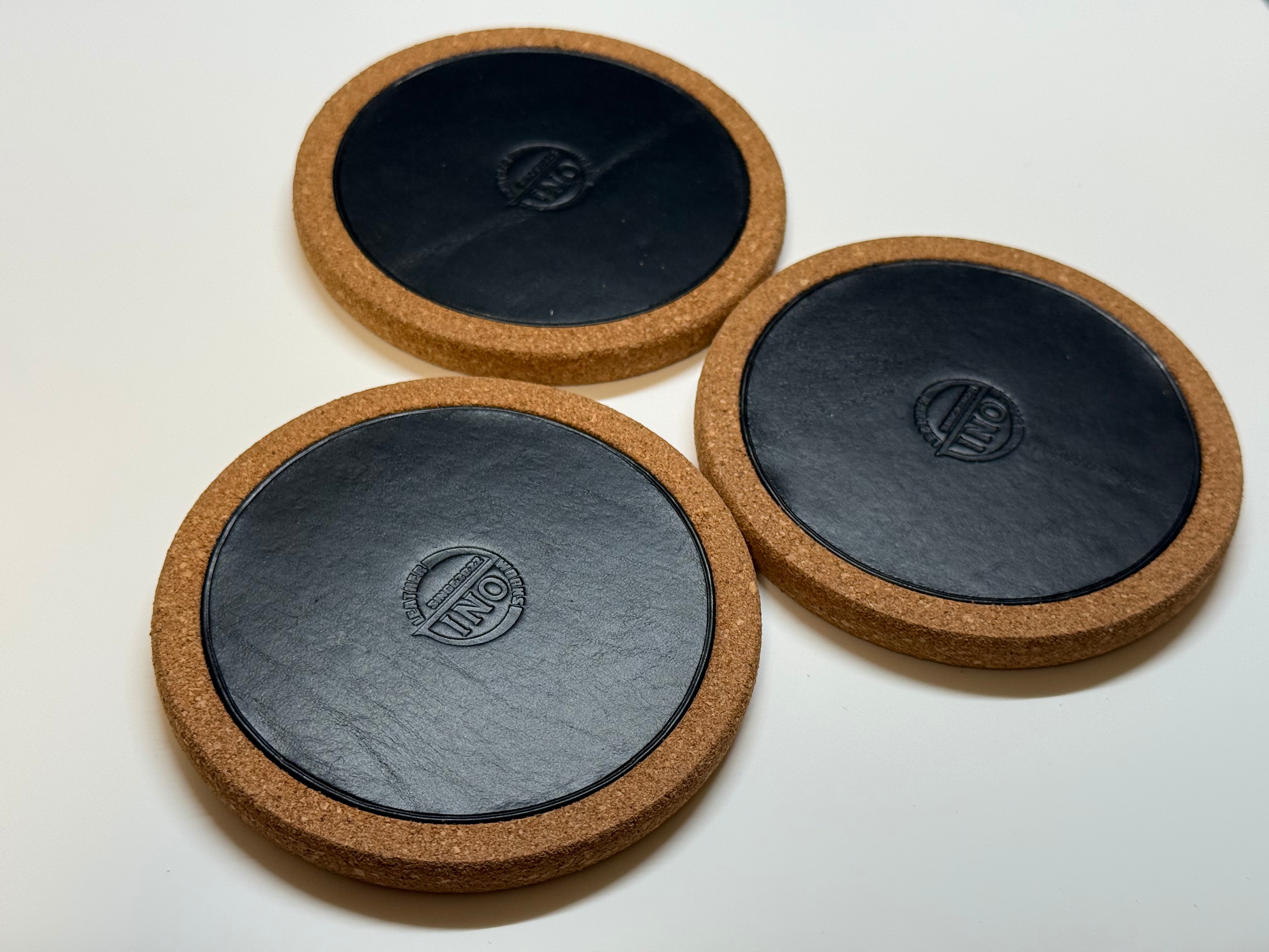このコースターは、イタリアンレザーイングラサットを使用しており、軽くコースターに貼り合わせることで耐久性と高級感を兼ね備えています。そのシンプルなデザインは、どんなテーブルにもぴったりとマッチし、飲み物を置くだけでなく、インテリアのアクセントにもなります。