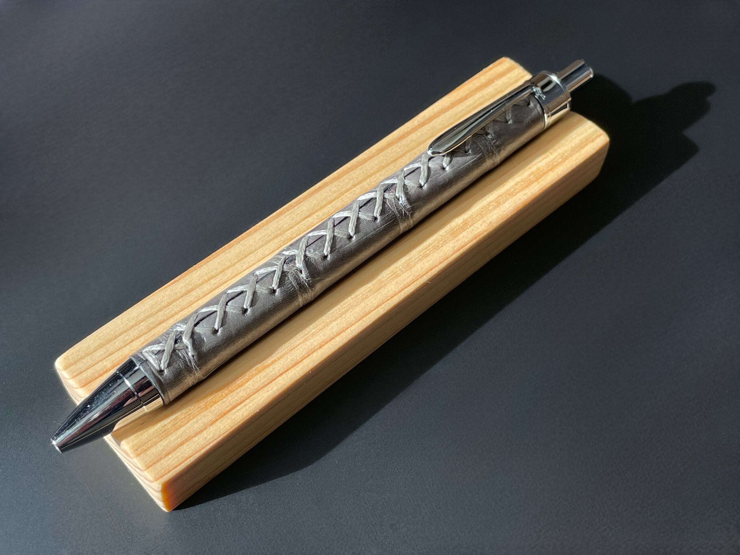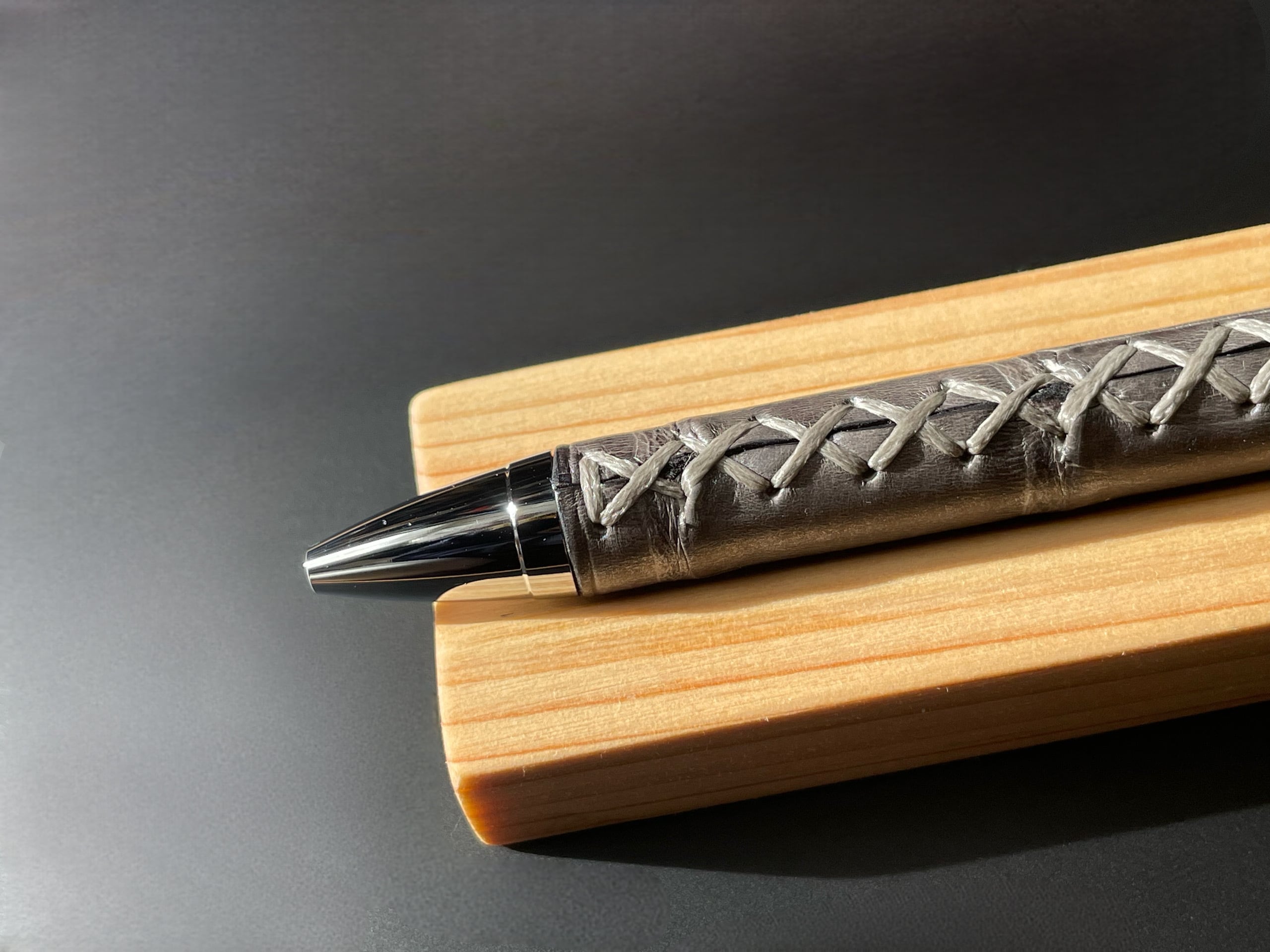 クロコダイル革でペンを製作しました。尻尾の腹側の部位を使用しています。鱗模様は全く同じものは存在しないため、所有欲も満たせる逸品となっております。是非この機会に高級レザーのクロコダイルのペンをお迎え下さい。