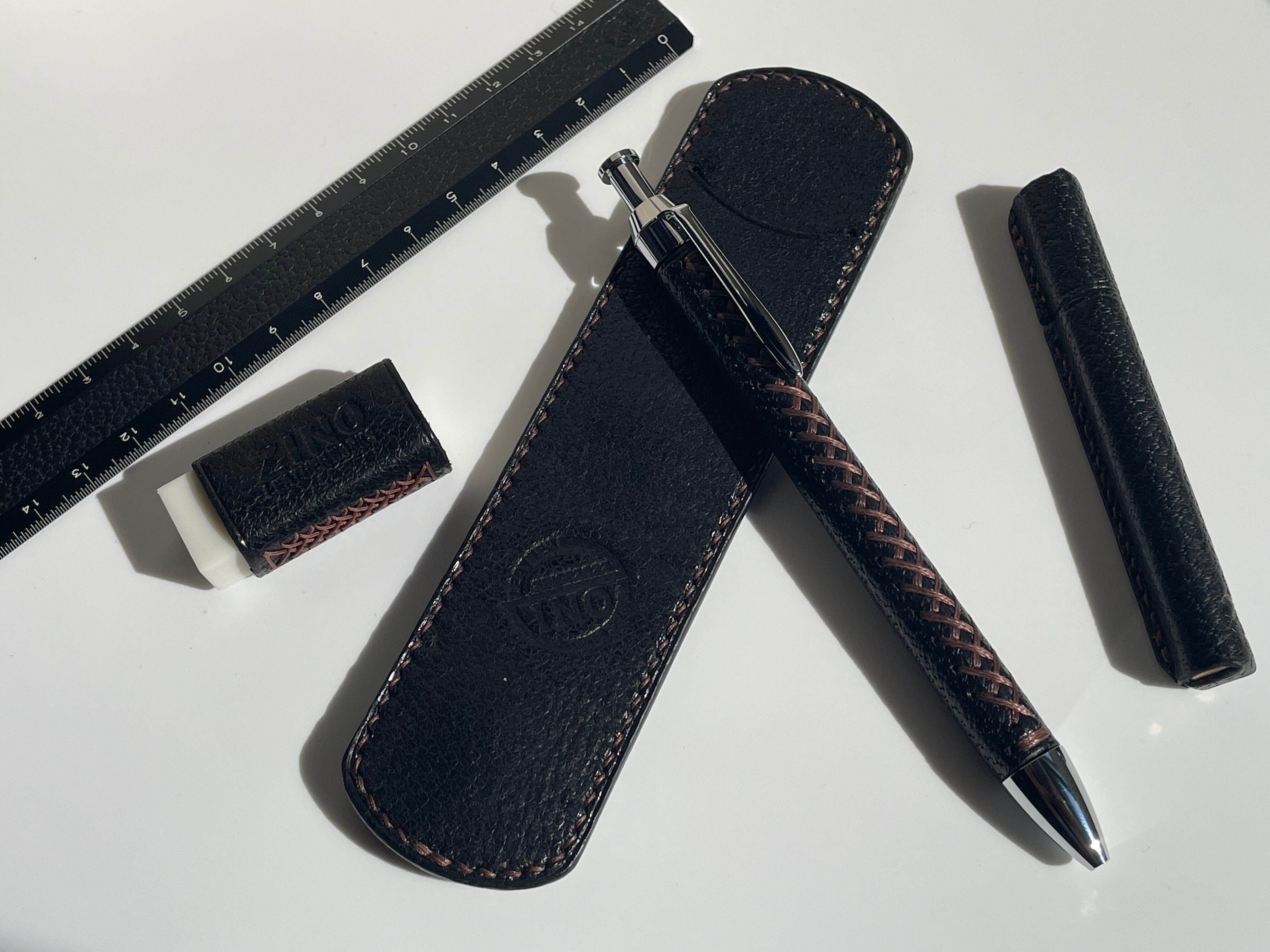 熊革で製作した文房具で統一感があり、熊の力強さを感じられる作品となっております。