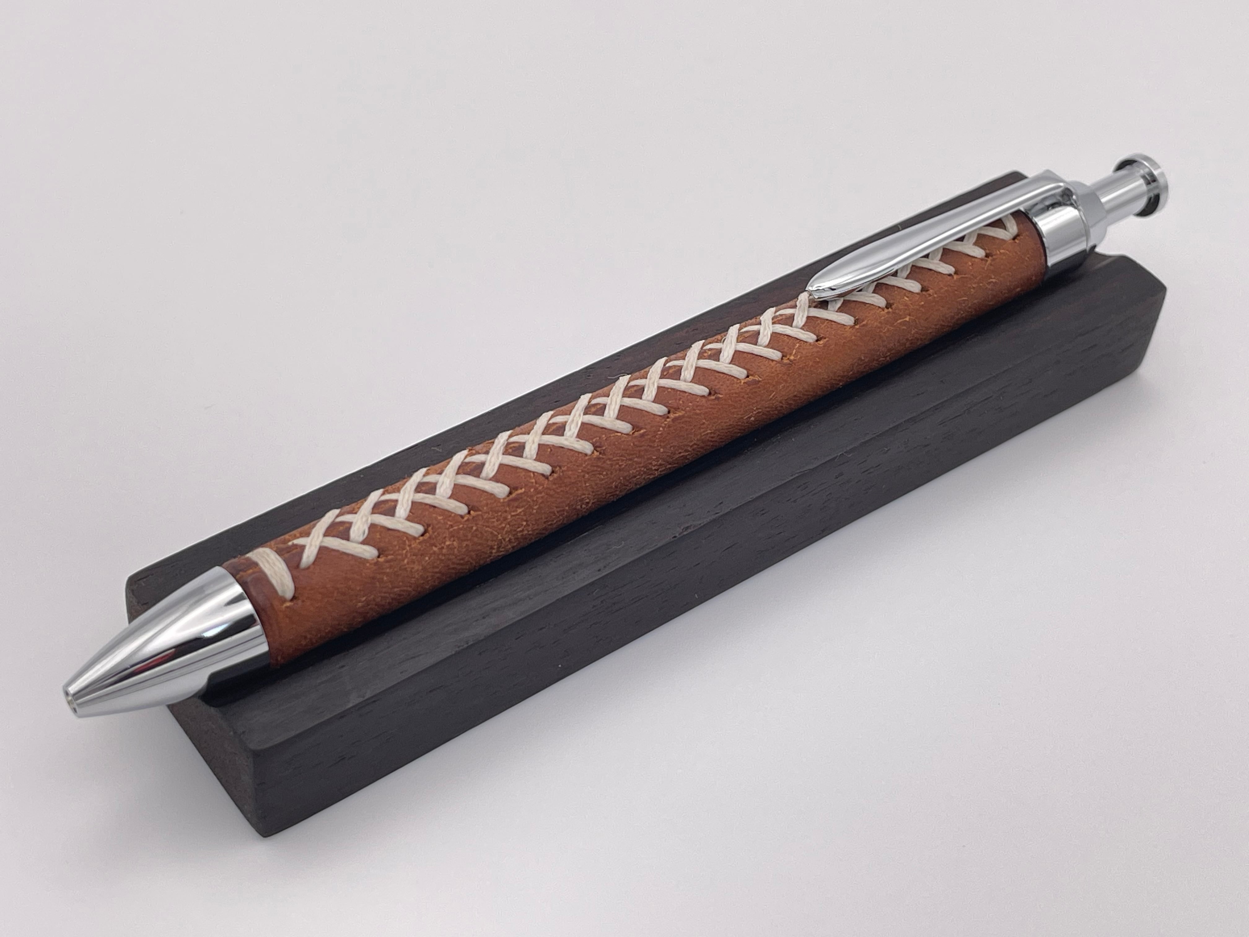 糸は耐久性の高いポリエステルの編織平糸を使用し、ペンに指が触れる方向を考慮しているため指に糸が触れたときの違和感を極力感じにくくしたオリジナルのステッチを施しています。