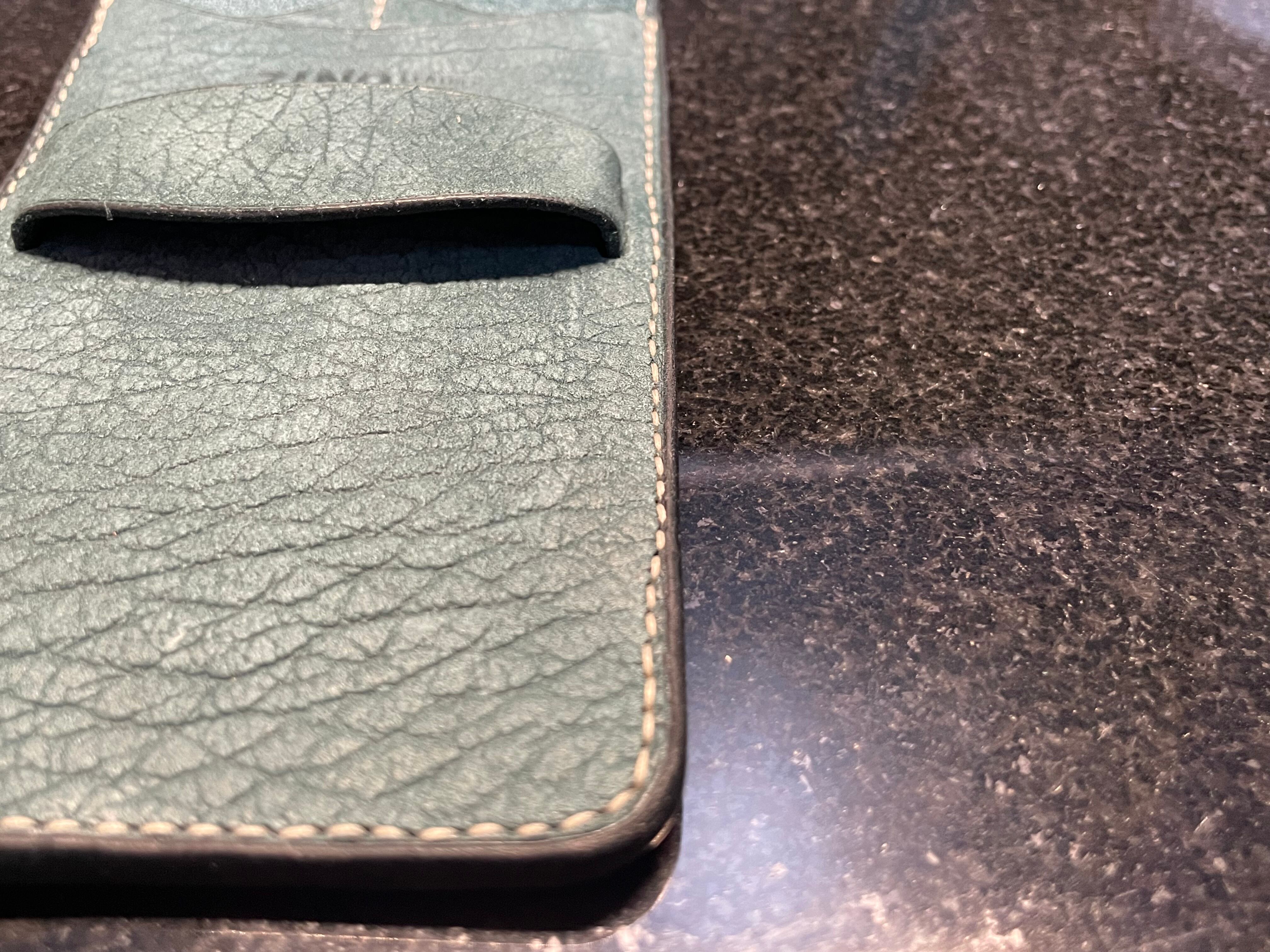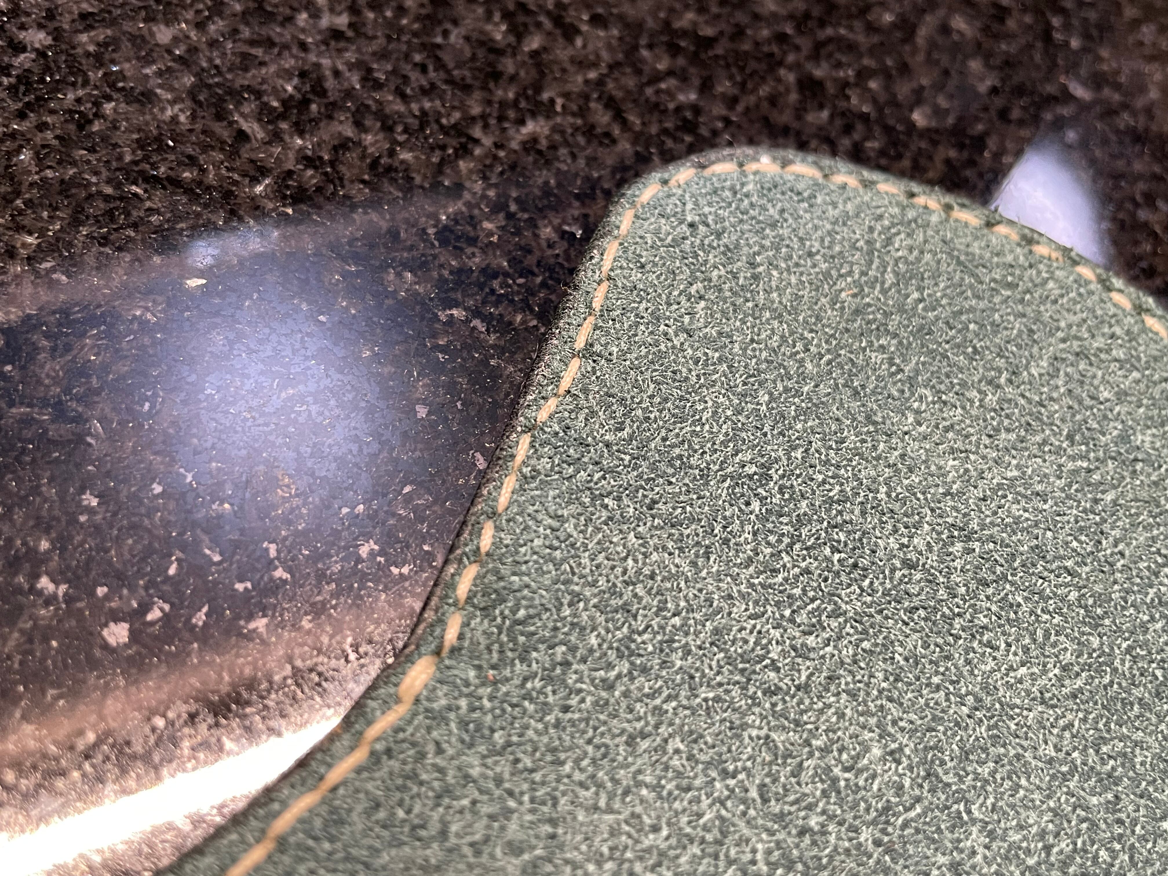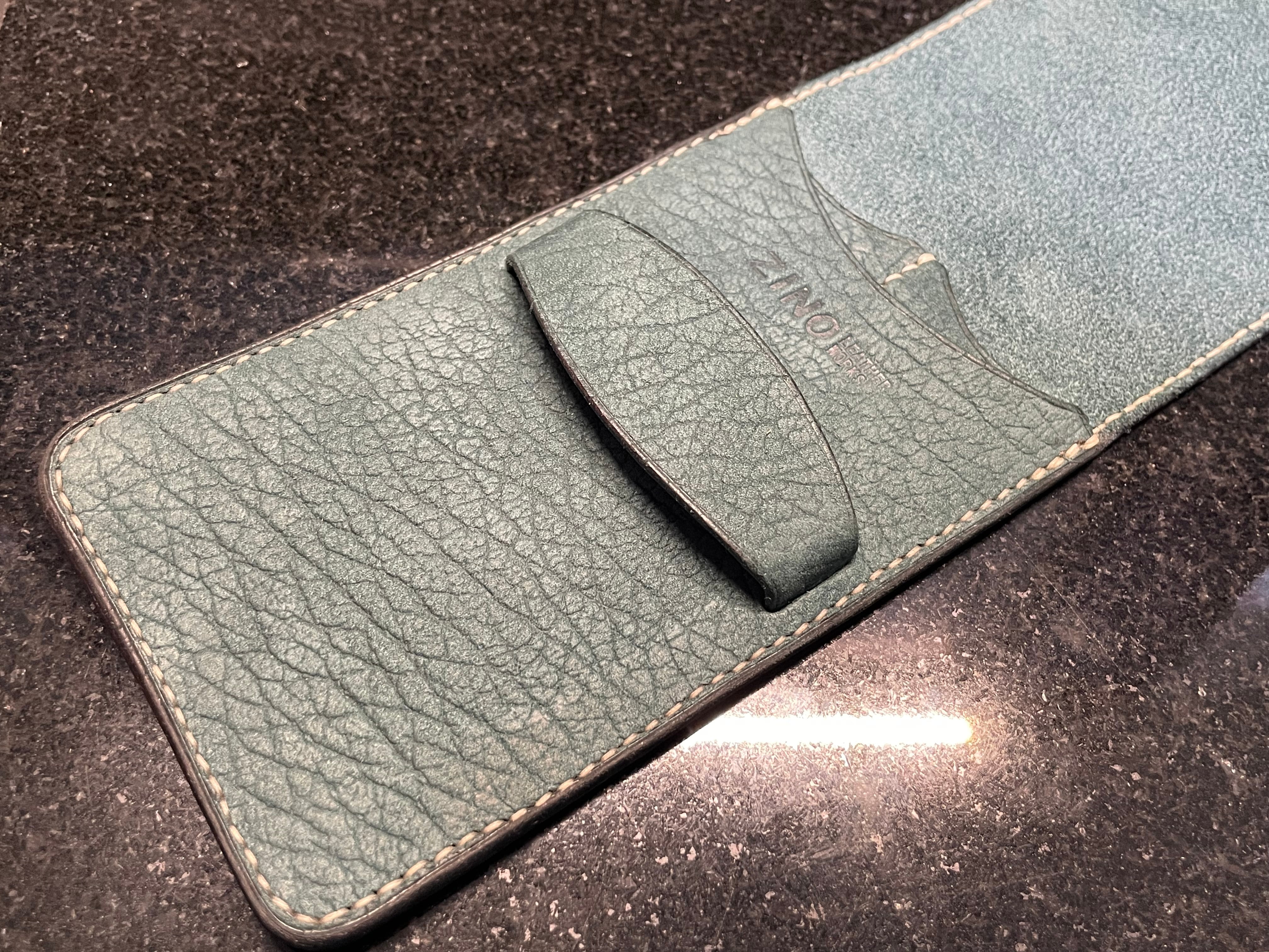 イタリアのトスカーナ州にあるコンチェリア 800(オット チェント)社で製造されており、オイルは少なめ、シボ、銀擦り加工がされていうという少し珍しいレザーです。