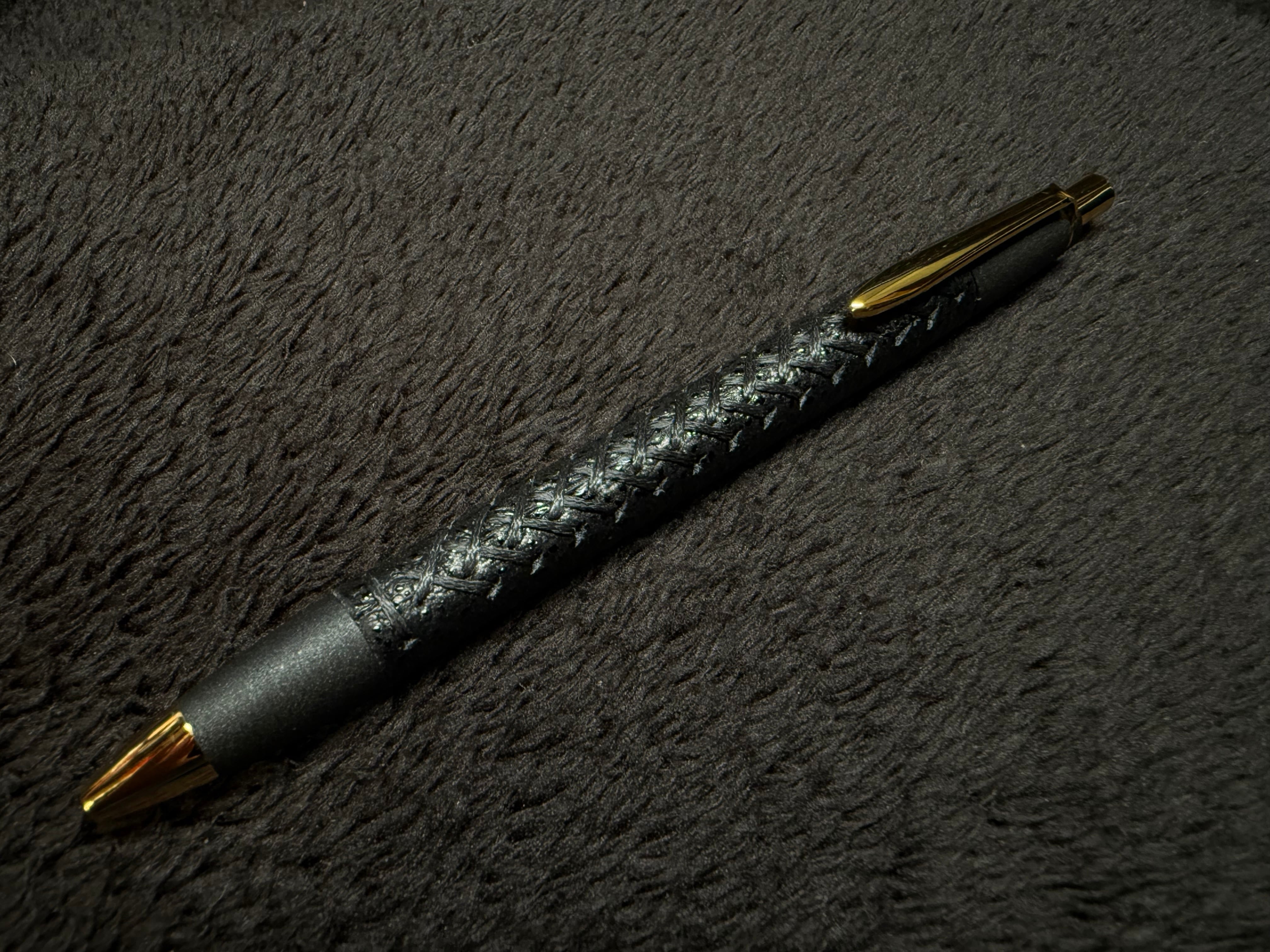 糸は耐久性の高いポリエステルの編織平糸を使用し、ペンに指が触れる方向を考慮しているため指に糸が触れたときの違和感を極力感じにくくしたオリジナルのステッチを施しています。